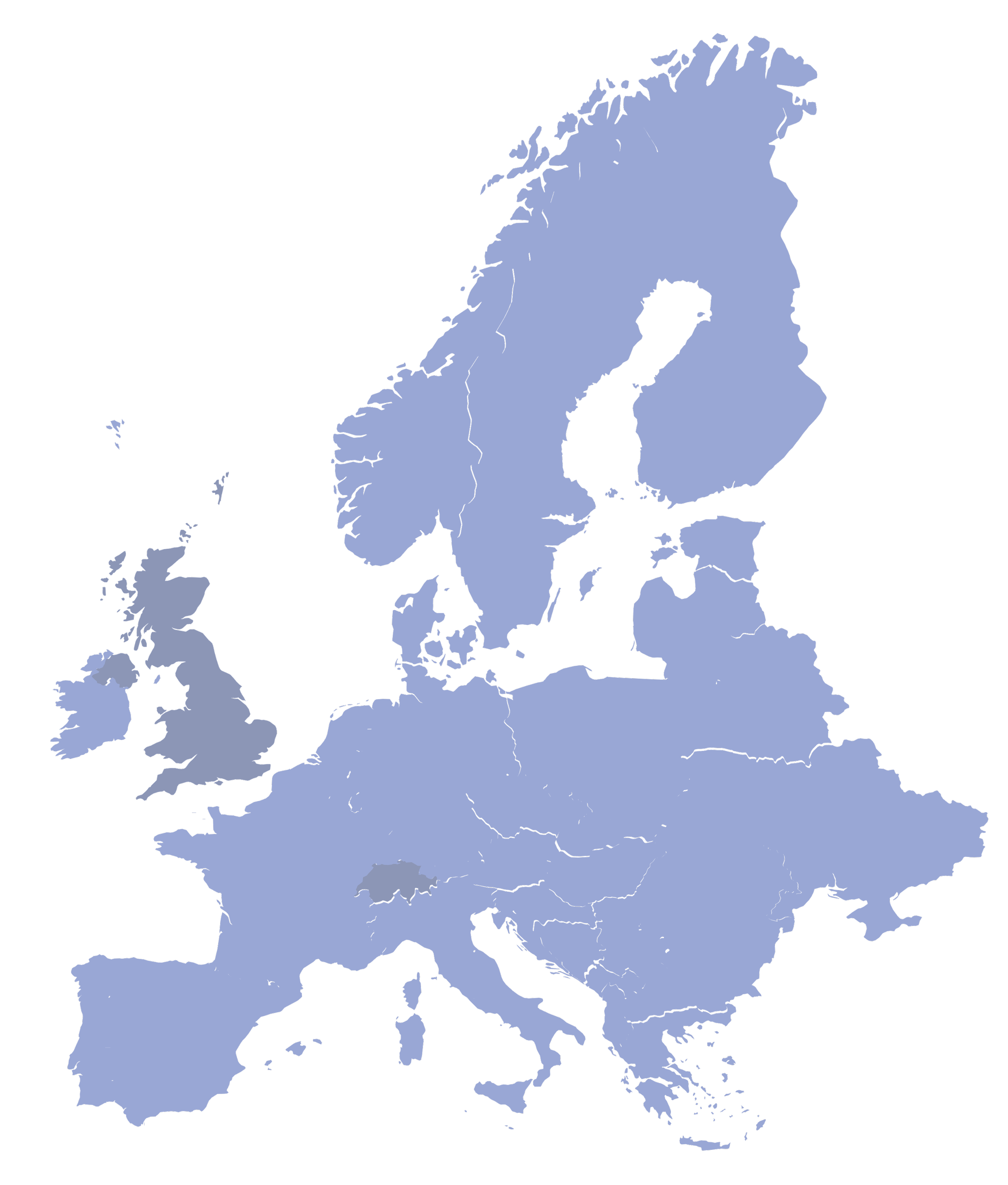 Austria, Belgium, Denmark, Estonia, Finland, France, Germany, Iceland, Ireland, Italy, Luxembourg, the Netherlands, Norway, Portugal, Slovenia, Spain, and Sweden.